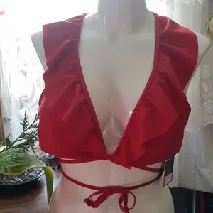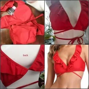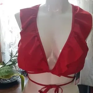 Brand new Shekini, Large Bikini Top, bargain Bikini, large ruffle Bikini Top, frills Bikini Top, red strap bikini, bikini large, large red bikini top, large strappy bikini, vacation, beach Bikini, sexy bikini, wrap around bikini, tie around bikini