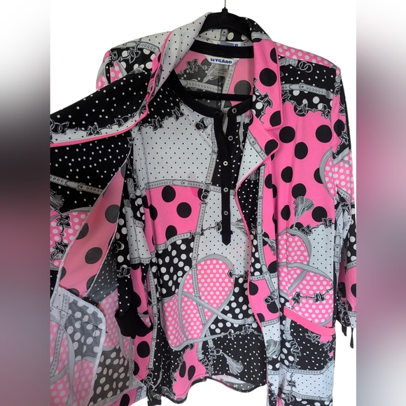 Nygard two piece polka dots and abstract print blazer and 3/4 sleeve shirt