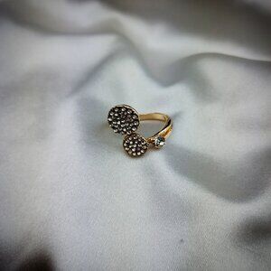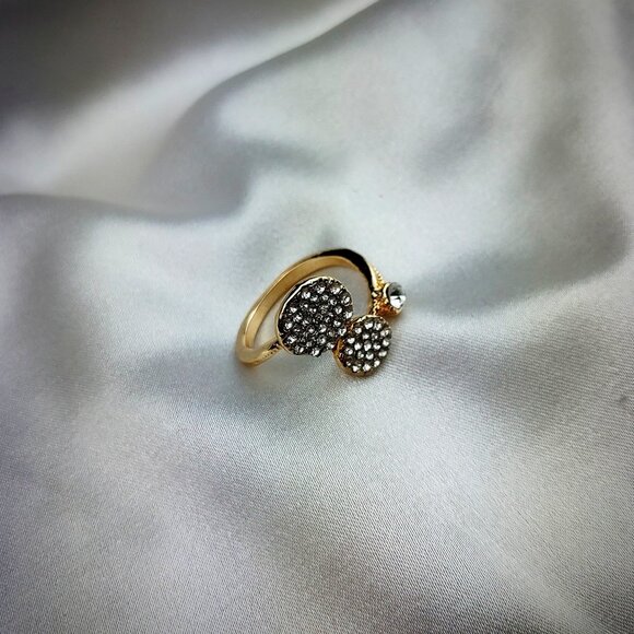 The unique Korean style design features two delicate rounds adorned with sparkling crystals that catch the light with every movement. Whether you're dressing up for a special occasion or adding a touch of glamour to your everyday look, this ring is sure to make a statement.