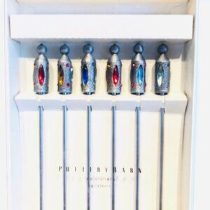 Two Sets of 6 Pottery Barn Stainless Steel Bejeweled Cocktail /Tea Stirrers.