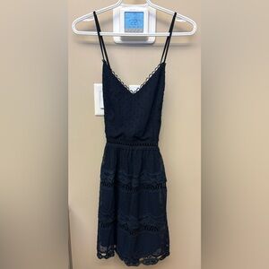 Two Sisters Navy Blue spaghetti strap lace above the knee dress women size Small