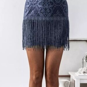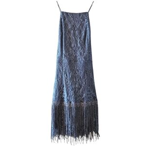 Two Sisters Shimmy Cocktail Spaghetti Straps Tassel Mini Dress Steel Blue Sz 6.