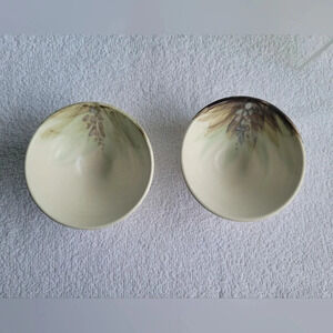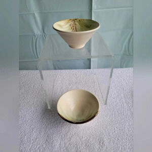 Two Small Bowls Handmade Handpainted Pottery Pine Trees Nova Scotia