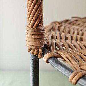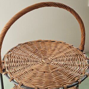 Two Tier Metal & Wicker Flat Fruit Basket Kitchen Dinning Decor Serving Tray