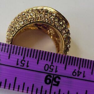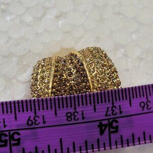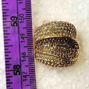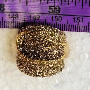 Two Tone Gold and Amber Color Wide Ring Concave Design with Rhinestones Size 6.5
