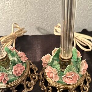 Two Vintage Capodimonte-style Porcelain and Brass Accent Lamps Read Description*