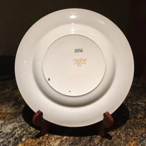 Two fair preowned vintage condition, white Crown Ducal dessert plates with dark cobalt blue and gold gilt trim in a Colfax pattern. Made in England. They are identical and priced accordingly due to the extreme crazing. Measures approximately 9" in diameter.