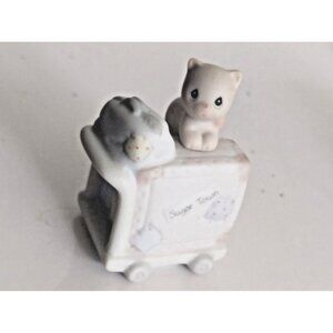 Two Vintage Precious Moments Sugar Land Theme Figurines 1995 Cat & Sign Holder