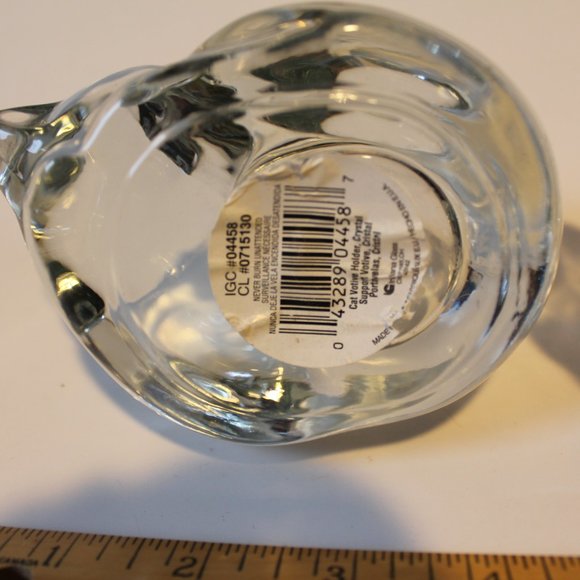 Two Vintage Sleeping Cat votive holders Clear crystal Indiana glass