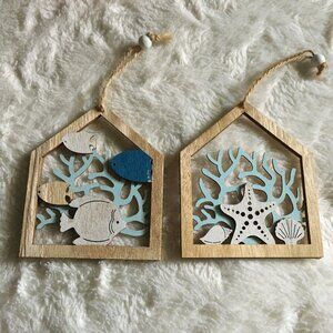 Two Wooden Die Cut Rustic Coastal Décor Wall Hangings