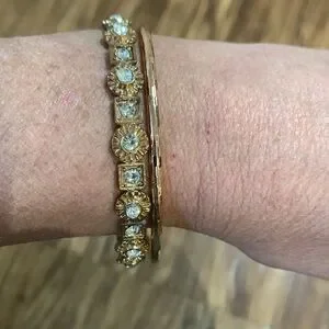 Two bracelets, rose gold in colour, jewelry, as shown in pics