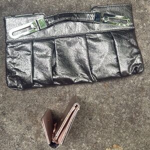 Two items! Metallic Silver Clutch and Adrienne Vittadini Rose Gold Card Holder