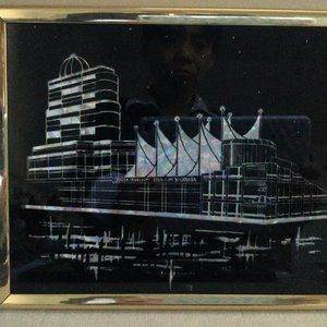 Two metallic etching? prints landscape framed waterfall and city