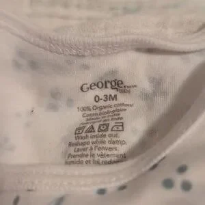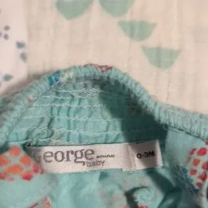 2 onesies one pineapple main color green other one white and blue both 0 to 3 months both same brand George button-ups pineapple one spaghetti strap white one short sleeve