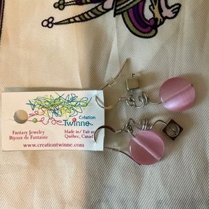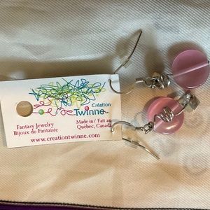 Two pair of earrings, one silver color and pink handmade by artisans 💗. New!