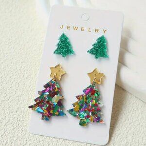 Two piece Holiday Christmas Stud Earring Duo - Resin - NEW