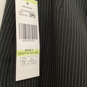 Two piece suit. Black with champagne pin stripes. Le Suit brand. BNWT. Size 4