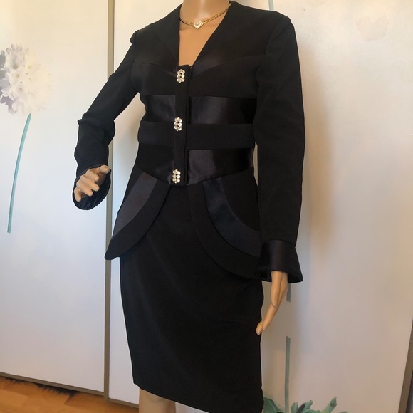 Really chic jacquet decorated with jellery buttons and satin. Adjusted and made small. Brand new!