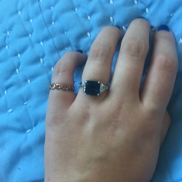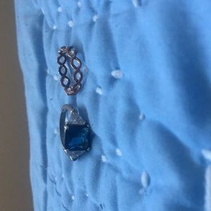 One is a blue diamond ring beautiful might I add. The second ring is a gold band. Ones size 8 ones size 6
