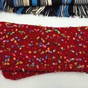 Two scarves Wool Red hand made, Blue striped