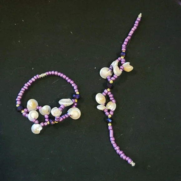 two purple shell bracelets