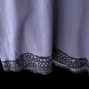 Grey and Black top with with great print and appliques. NEW, has not been worn. The front has a black and white modern floral print and the back has a smaller print along the bottom edge. The top is 100%. organic and is size XL