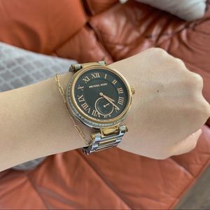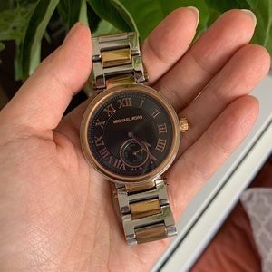 A silver and rose gold two tone MK watch