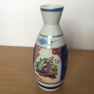 Two vintage Japanese porcelain sake bottle small vase signed beautiful