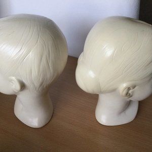 Two vintage Valerie bust sculptures woman & man head signed excellent condition