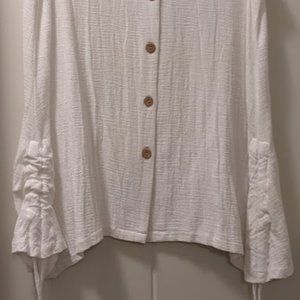 Hi. Just wondering, in one picture, the blouse looks sleeveless and the other looks like it is long sleeve with lacey cuffs? Thanks.