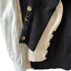 Elevate your style with this sophisticated two-tone sweater. Featuring a classic black and white design, this sweater is perfect for any occasion. Stay warm and stylish all season long.