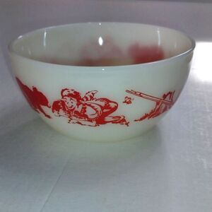 Old Artifacts on Red Band Bowl 5" diameter x 2" high