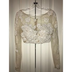 Hannah S - Two Piece Illusion Lace Applique Cocktail Dress. I wore this dress for my Bridal Shower & never got so many compliments in my life, pictures do this set no justice! Simply beautiful - wore once, BRAND NEW! I am 5'4, 110 lbs and a 32C!