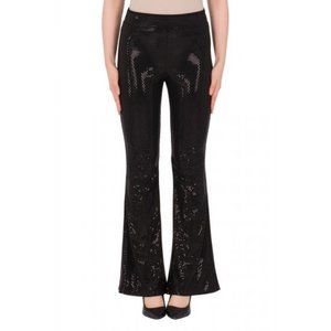 Elegant and sparkling tunic top adorned with black sequins and mesh netting. Matching pant pull on bell pant with full elastic waistband with metallic polka sheening.