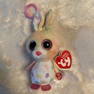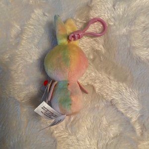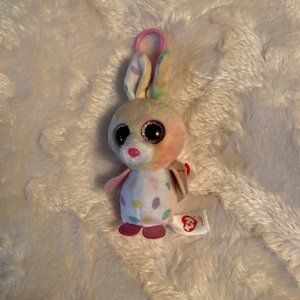 Ty Basket Beanie Plush Easter Bunny Pastel Swirls key clip from 2016. Cute soft plush pastel bunny with sparkle eyes, pink key clip. This collectible is new with tags.