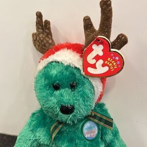 Ty Beanie Baby “2002 Holiday Teddy” the Green Reindeer Bear (8.5 inch)