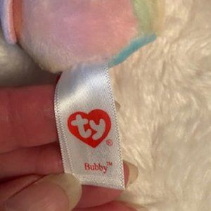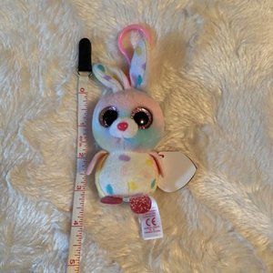 Ty Beanie Boo's Plush Easter Bunny Pastel Bubby Collectible Key Clip from 2016. Cute soft plush pastel bunny with sparkle eyes, pink key clip. Birthdate is April 24. This collectible is new with tags. All ty tags attached. Tush tag attached. Approximate height is 3.5" (9 cms). Perfect to attach to your backpack! Colour depends on screen settings and lighting in pictures. All measurements are approximate.All items are from my smoke free home.