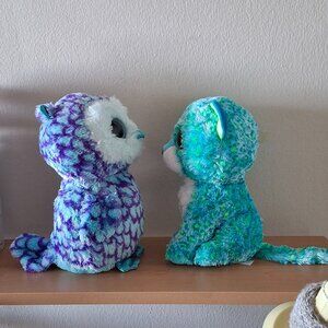 Add a touch of sparkle and cuteness to your collection with this adorable set of Ty Beanie Boos featuring Leona the Leopard and Oscar the Owl! These popular 6-inch plush toys are known for their oversized, shimmering glitter eyes that are sure to charm.