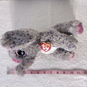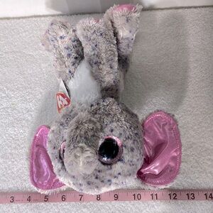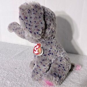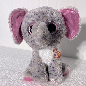 Charming plush elephant by Ty. Features soft gray fur with pink highlights. Ideal for snuggling.