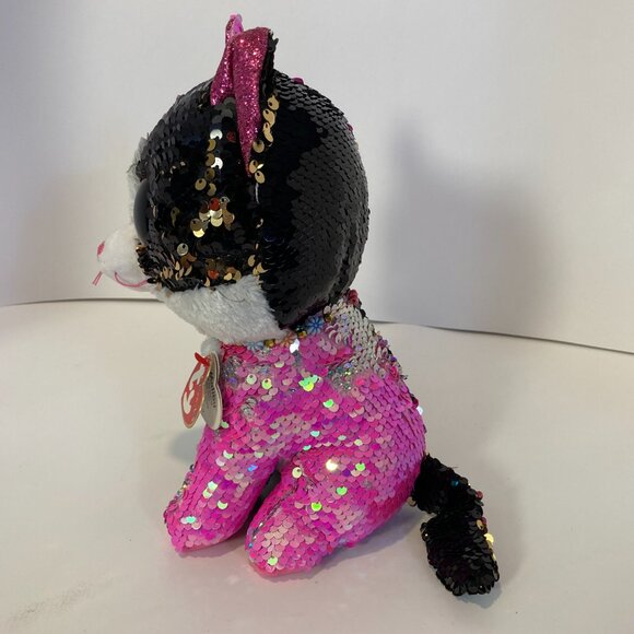Ty Beanie Flippables Malibu Cat 10" Stuffed Plush Toy 2018 Pink Eyes Black White
