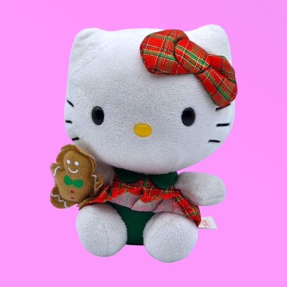Ty Sanrio Hello Kitty Holiday Red Plaid Christmas Dress w/ Gingerbread Man Plush - in excellent condition.