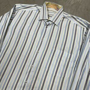 Tyler Shorten Bespoke Dress Shirt Striped Multicolor Floral Cuffs Large