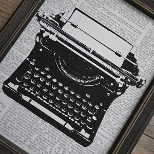 Charming wall art featuring a vintage typewriter design. Perfect for adding a retro touch to any room. Comes with a ribbon for easy hanging.