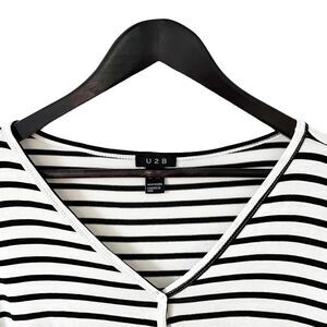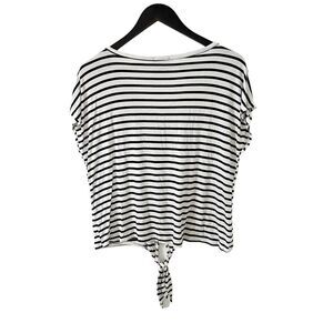 U2B Black White Striped Front Tie Short Sleeve T-shirt