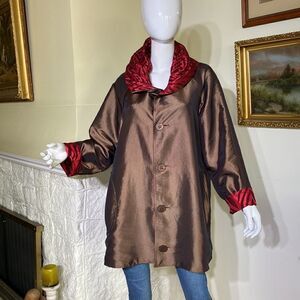 Looking to express your adventurous and playful side? Look no further than this Ubu car length reversible swing coat. Made from lightweight satin polyester, it’s perfect for the woman who loves to explore and have fun while looking elegant and polished. You get two different looks in one coat!! Plus, they're easy to pack, making them ideal for travel and outings.