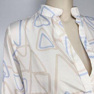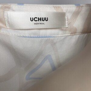 UCHUU V-Neck Pleated 3/4 Sleeves Mandarin Collar Geometric Pattern White Mini Dress 2