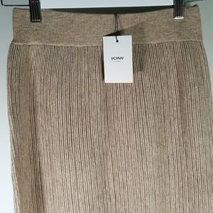 UCHUU Montréal Taupe Rib Knitted Straight Skirt