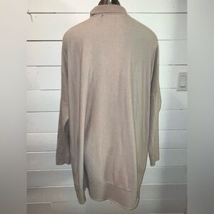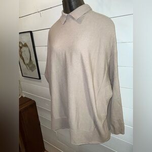 Cozy meets chic with this oversized knit sweater by UCHUU Montreal. Designed in a soft taupe hue, this drop-shoulder pullover features a mini collar, relaxed silhouette, and ribbed hem detailing. Perfect for layering or wearing solo for an effortlessly elegant look. Tag size S/M — fits loose and roomy.