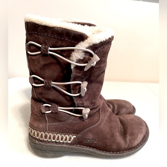 UGG Australia 5183 Womens Kona Dark Brown Suede Sheepskin Toggle Boots Size 7