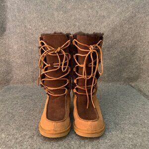 UGG Australia 5278 Girls Youth Tall Sheepskin Brown Tan Leather Suede Lace Up Boots